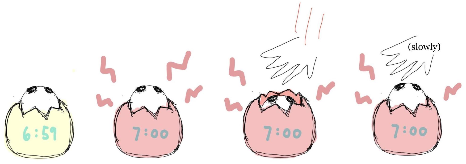 As with any other timer, it emits an alarm to notify users when a certain amount of time has elapsed. This can be turned off by pressing down on Critter’s head. If it senses danger however, i.e. a hand is approaching too quickly for comfort, Critter's alarm turns into an expression of its own alarm. It shrinks into its shell for safety, revealing the shell's jagged edges and making it even harder to turn off the alarm. Critter’s appearance and reactions serve to force interactors to confront the ways in which they treat it.