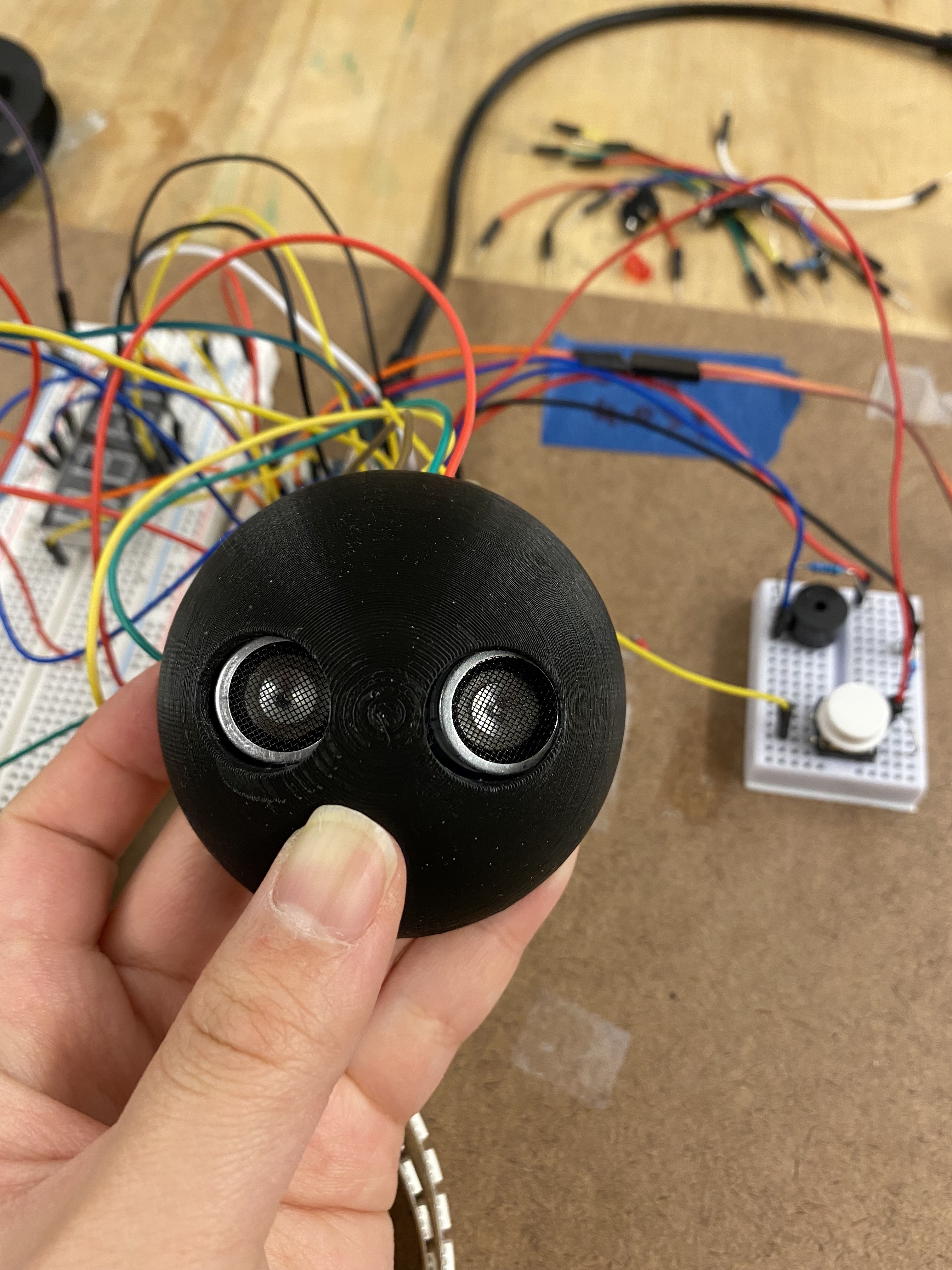 Pictured below are all of my electronics components, pre-installation, and also what printing the shell looked like. I made it as thin as structurally possible in order for the LEDs to be visible through it. Aside from the electronics, all of Critter's parts are 3D printed.