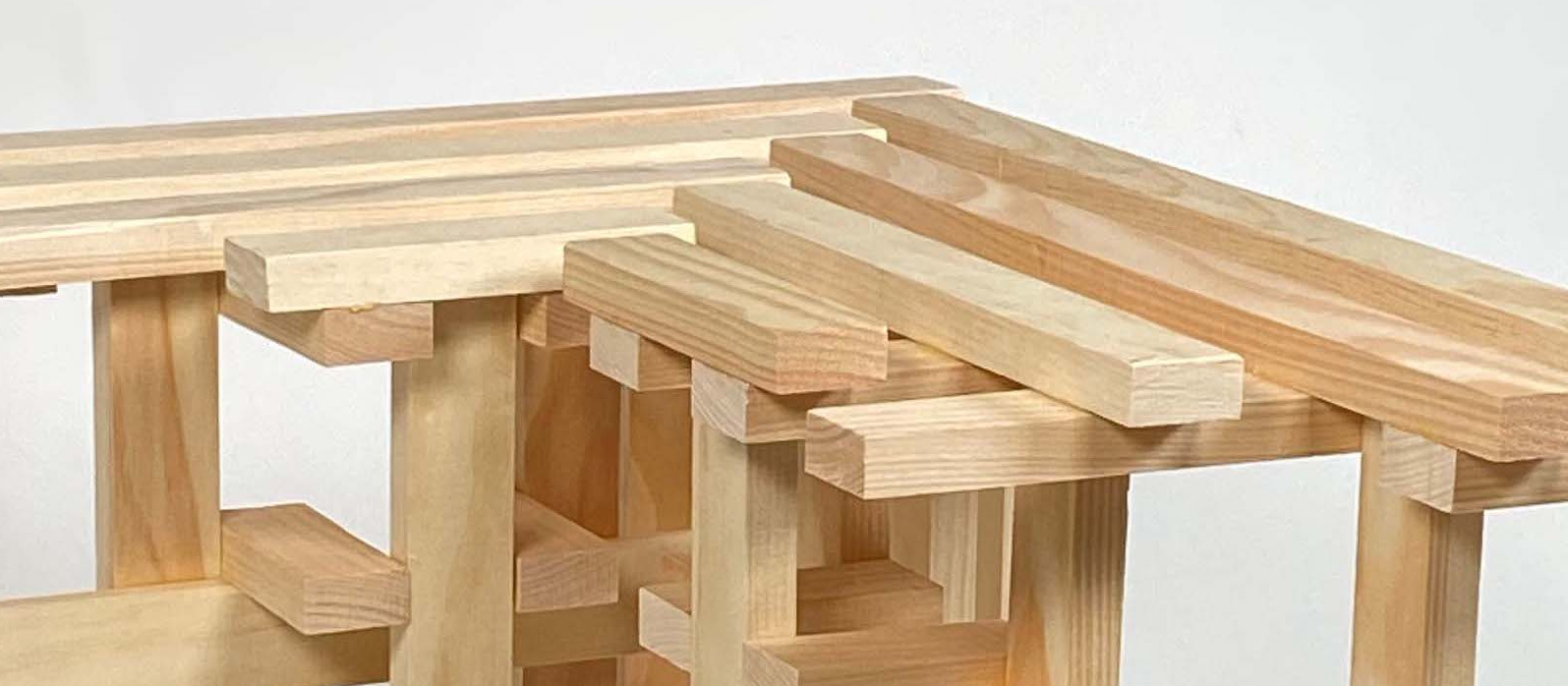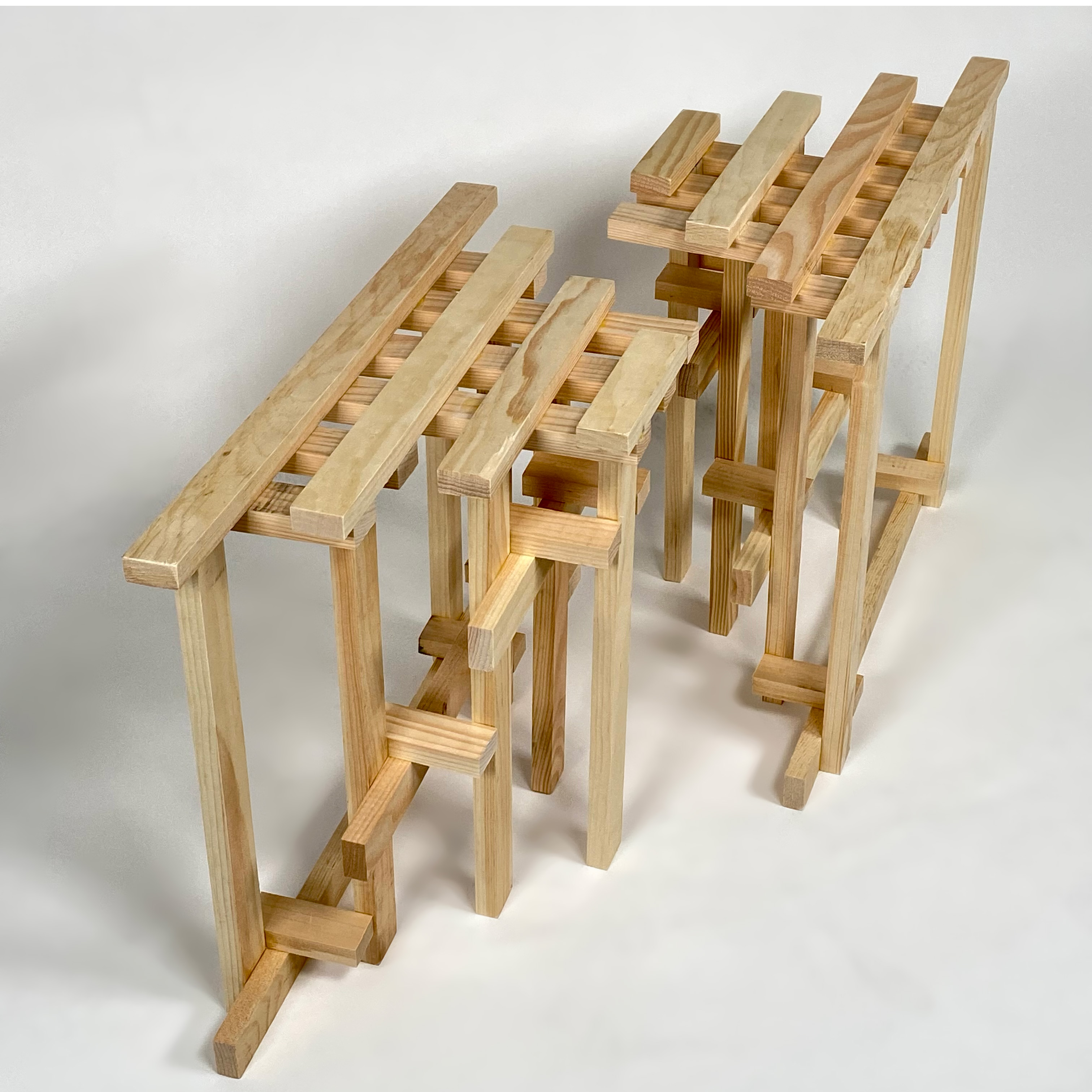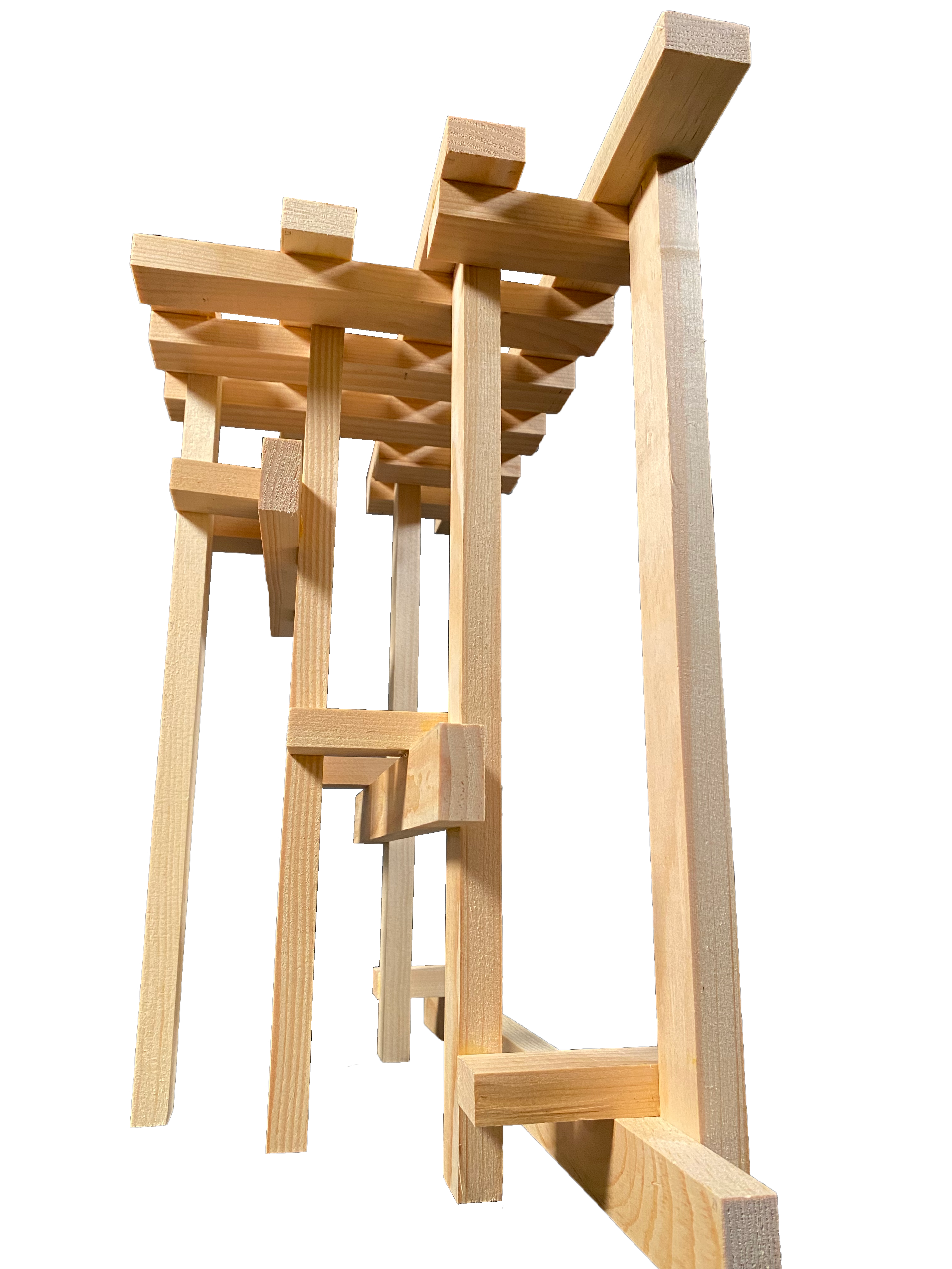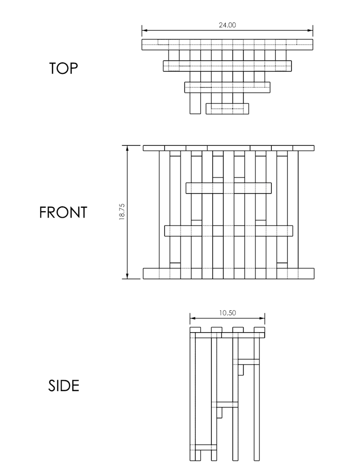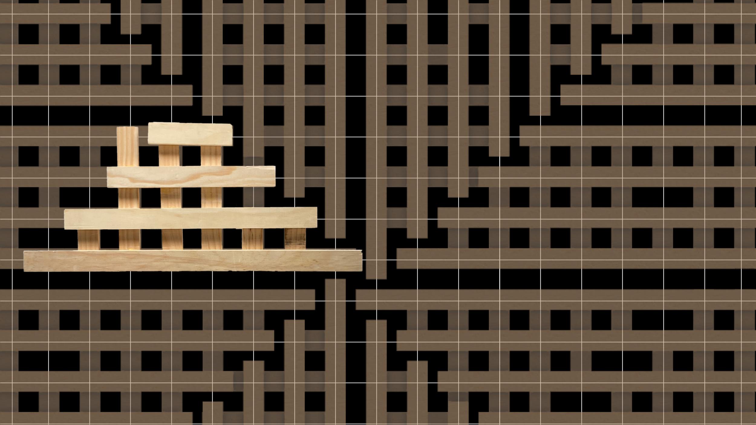 The grid design was a practical decision, inspired by the gridded note pad that I was using to measure and align my pieces as I was prototyping earlier forms with balsa wood. The final form was the result of maximizing functionality and stability while simplifying construction. For the actual stool, I scaled up the grid such that each unit = 1.5 inches, and its integral role in the fabrication process is demonstrated in the video.