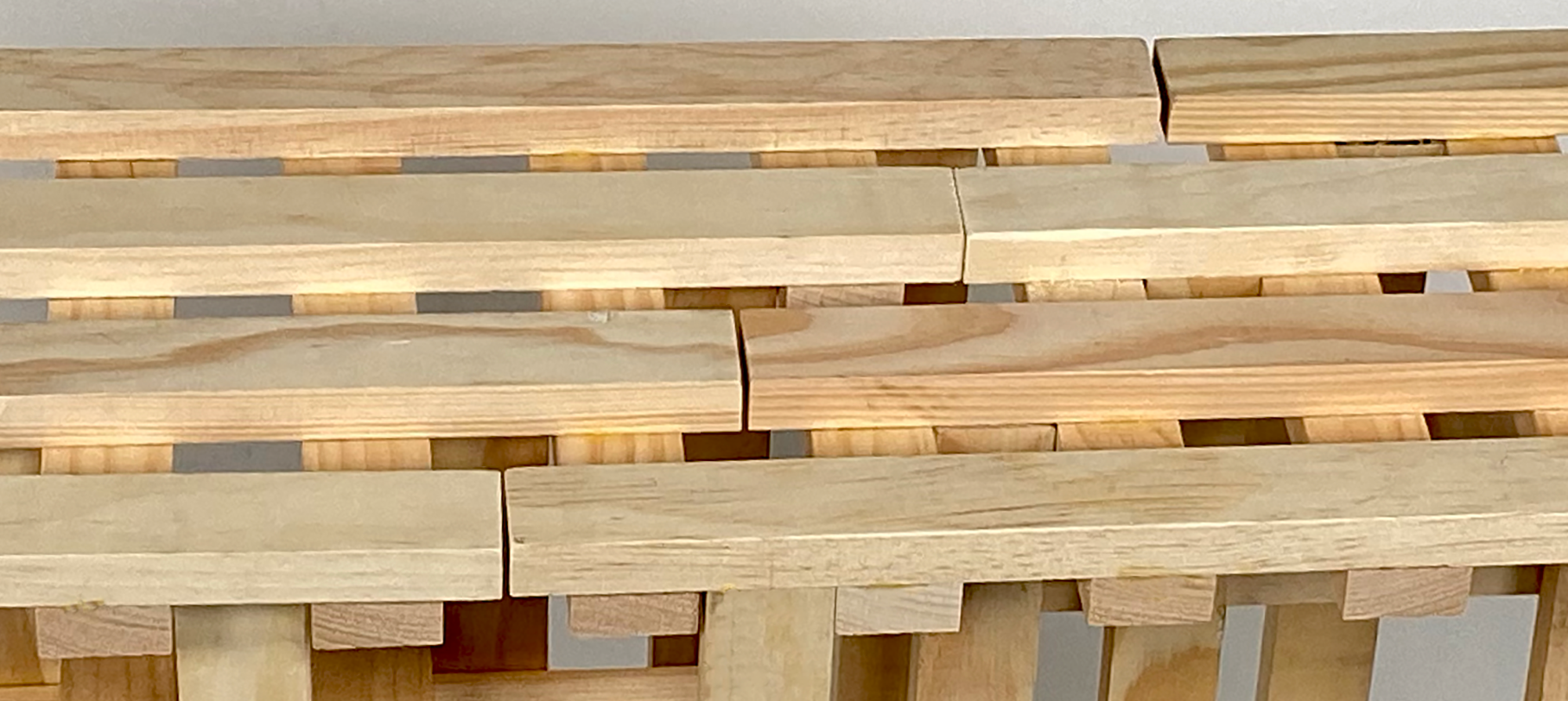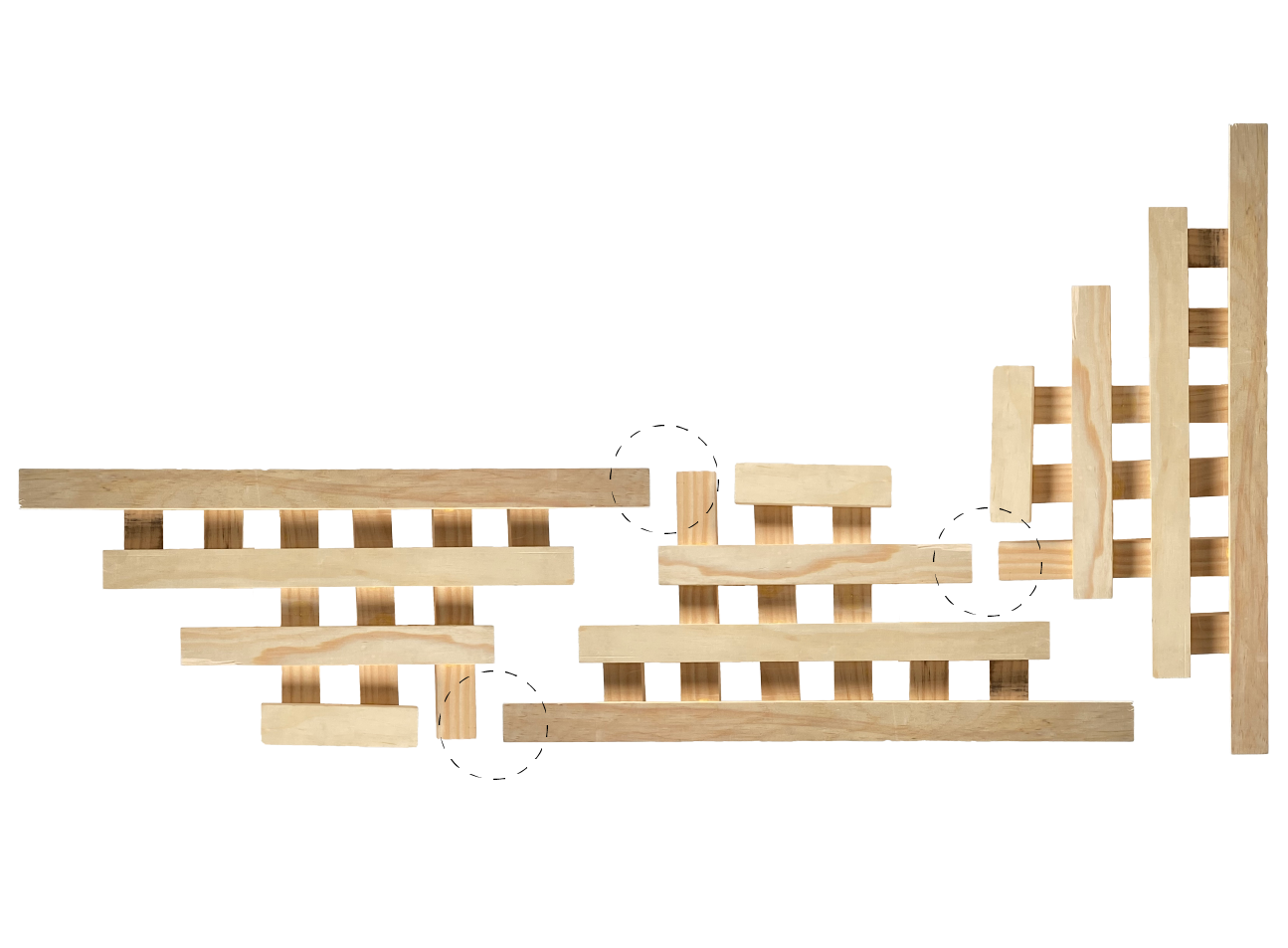 The joining of stools is made possible by the gridded form and the stacked layers of the stool’s seat. At the connection points indicated in the above picture, the protruding parts of the stools overlap and interlock.
