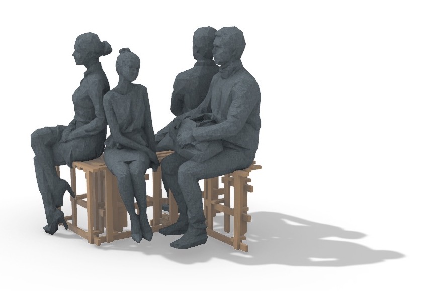 An important characteristic of these stools is that they can only be sat on from certain directions, meaning that the orientation of the stool limits which way the sitter faces. Take the arrangements pictured above for example - if two stools are connected at a 90 degree angle, that forces the sitters to face outward away from each other.