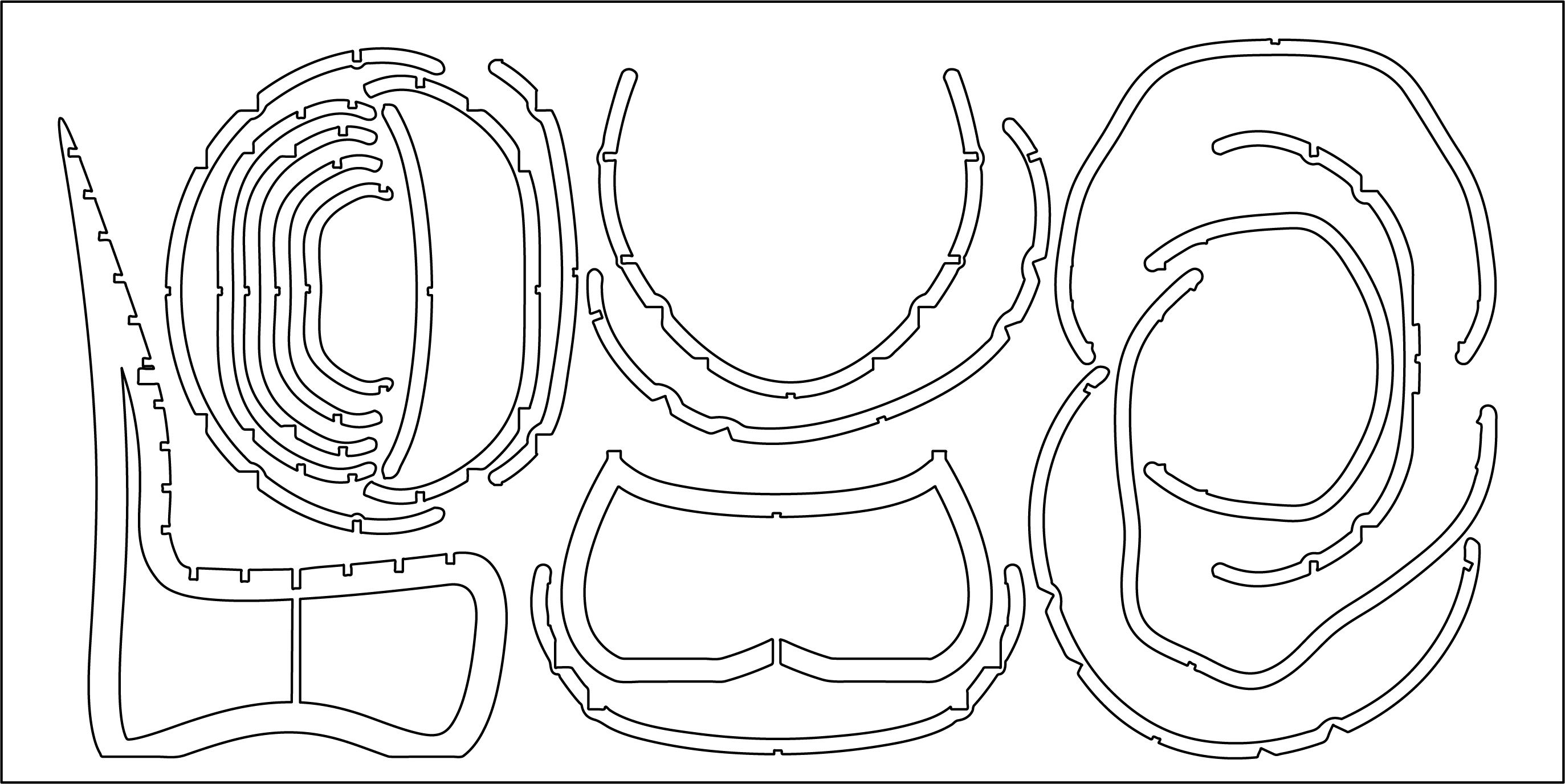 The chair is comprised of 18 pieces, which all fit onto a 4x8 sheet of plywood. After being CNC machined, they are friction fit together - this chair doesn't require any fasteners or glue.